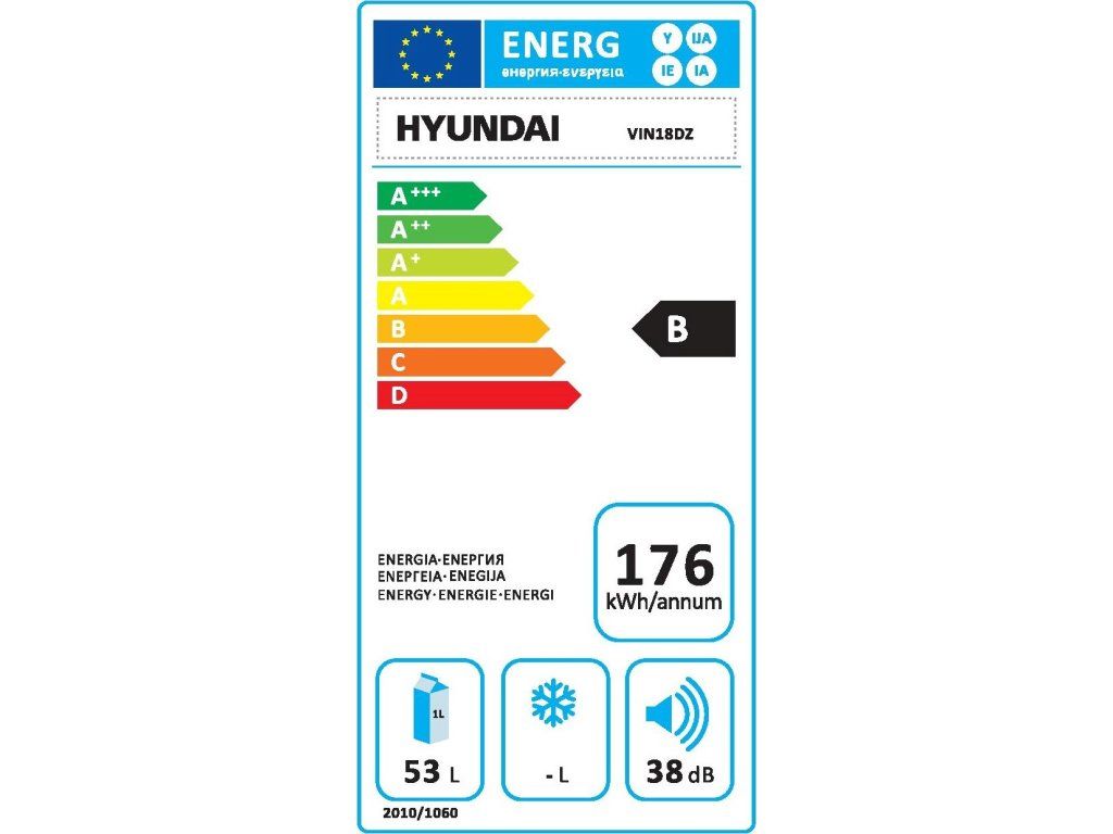 Volně stojící vinotéka Hyundai VIN 18 DZ nabízí objem 53 litrů a příkon 100 W. Zajímavým prvkem jsou zrcadlově tónovaná dvířka. Vinotéka je vybavena drátěnými policemi, na které lze uložit až 18 lahví vína - konkrétně pak 8 lahví v horní zóně na červené víno a 10 lahví ve spodní zóně na bílé víno. Maximální rozměr lahve může být 8 x 33 cm.